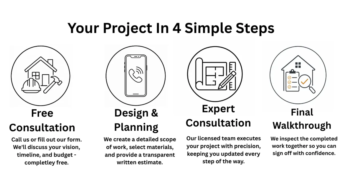 It depends on the scope. A bathroom remodel typically takes 2 - 4 weeks, a kitchen rennovation takes 4 - 8 weeks, and a full ADU build takes 4 - 6 months. During your free consultation, we'll provide a detailed timeline specific to your project.